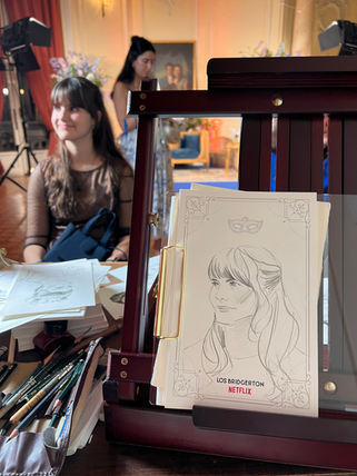 Arte en vivo en grafito para los invitados del Baile de Máscaras de los Bridgerton de Netflix